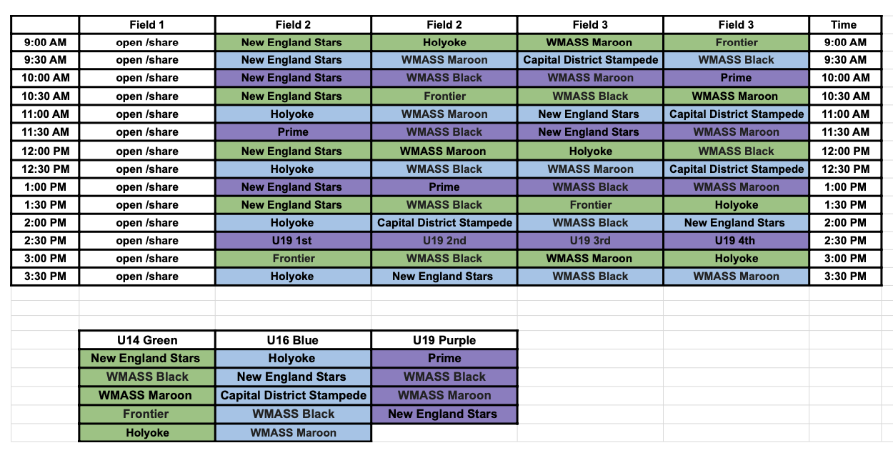 WHERE TO PARK: Tournament is located on the Outdoor Turf Field (D/E 2). Please park in Lot AA Grid E2/F2, Lot X Grid E3, Lot Y Grid E3, or BB Grid F2. If you put in “Smith College Athletic Fields, Northampton, MA) in your phone map app, it should get you right to that area.
