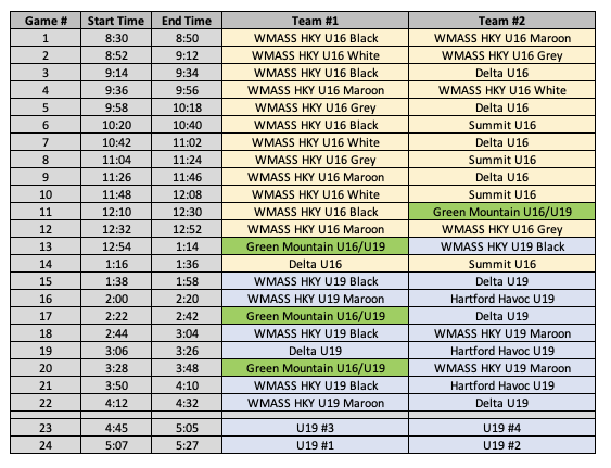 Please Note: Schedule was updated 1/30 @10:50am (there was a small typo in the end time for game #7, so that has been updated and the following games start slightly later (15 minutes)